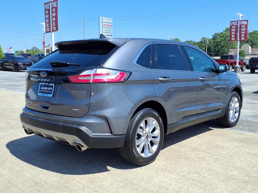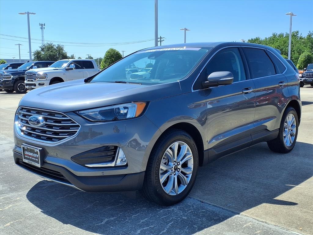 This 2024 Ford Edge Titanium Crossover is a state-of-the-art motorcar that has been meticulously maintained and driven for 37,320 miles. It features an all-wheel drive system with a 2.0 liter 4 cylinder engine and turbocharged powertrain, providing a reliable and efficient driving experience. The gray metallic exterior and ebony interior give this vehicle a sophisticated look, while the 5 out of 5 star crash test rating ensures safety and peace of mind. The Edge Titanium Crossover also offers a wide range of features such as blind spot sensor, hill start assist, and on demand four wheel drive to make your driving experience even more enjoyable. With an impressive fuel economy of 21 mpg in city and 28 mpg on highway, this car is sure to make your driving experience both economical and enjoyable. The final price includes available non-conditional consumer cash incentives, incompatible with promotional APR or Lease Offers. Online price does not include tax, title, license fees, or dealer-installed options. Contact our Internet Sales Team @ 409.237.0765 to confirm availability and arrange your Test Drive!