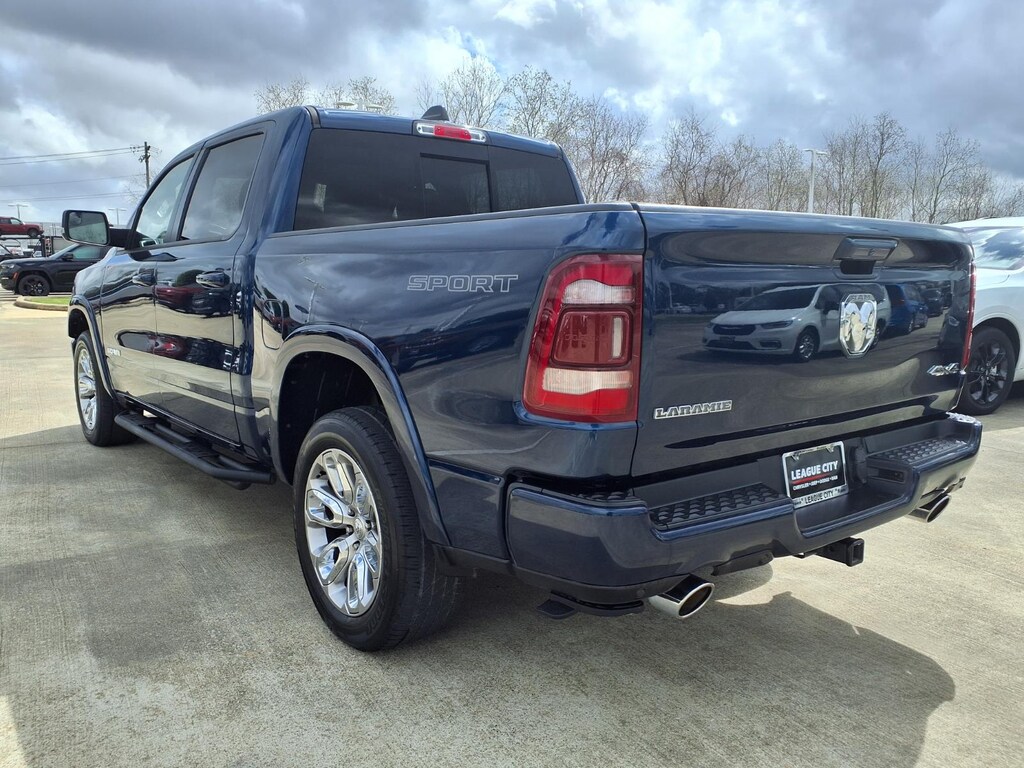This 2022 vehicle is a RAM Crew Cab 4x4, 1500 Laramie with a 5.7 liter 8 cylinder engine and sequential port fuel injection. It has a patriot blue pearlcoat exterior and a black interior. It has a fuel economy of 15 mpg in the city and 21 mpg on the highway, making it an efficient choice for those looking to save on gas. It also has a crash test rating of 5 out of 5 stars, making it a safe choice for drivers. This motorcar also comes with hill start assist, part time with on demand four wheel drive, and 92,608 miles driven. It is the perfect combination of style, power, and safety for any driver looking for a reliable motorcar. The final price includes available non-conditional consumer cash incentives, incompatible with promotional APR or Lease Offers. Online price does not include tax, title, license fees, or dealer-installed options. Contact our Internet Sales Team @ 409.237.0765 to confirm availability and arrange your Test Drive!